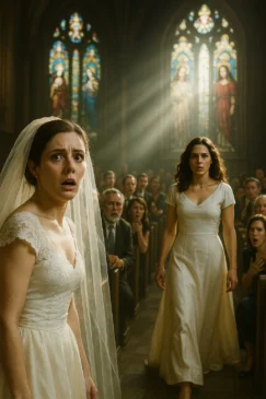 I swear the sound of the organ still echoes in my head. It was supposed to be my moment—my day. I stood there at the altar, my hands clammy, my smile trembling but wide enough to fool a hundred guests. The white runner stretched out before me like a path to forever. And then… she appeared. Another woman. In white. Walking down the aisle. Toward me. And she wasn’t me.