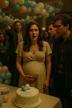 The pastel balloons swayed gently above the table, the cake sat in the center with pink and blue frosting swirls, and laughter filled the room. It was supposed to be the happiest day—our baby shower, the moment friends and family came together to celebrate new life. I was seven months pregnant, glowing with excitement, holding Ethan’s hand as we opened gifts one by one. Everything was perfect—until a voice cut through the joy like a blade. “That’s my child,” a man shouted from the back of the room. “Not his.”