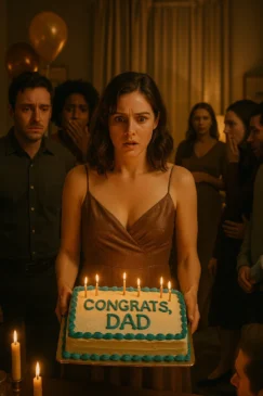 I had always loved birthdays. The smell of frosting, the flicker of candles, the chorus of voices singing your name—it felt like proof that you mattered. So when my husband, Mark, insisted on throwing me a big party for my thirty-fifth, I was thrilled. Friends, family, coworkers—all crammed into our living room decorated with gold balloons and fairy lights. Laughter echoed off the walls. I felt cherished, celebrated, special. Until the cake came out. Until I read the words written in blue icing: “Congrats, Dad.” And suddenly, the room went silent.