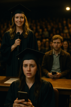 As the dean finished calling the last names, he returned to the microphone. “We have a special announcement from one of our graduates,” he said cheerfully. My heart skipped—no one had mentioned this.