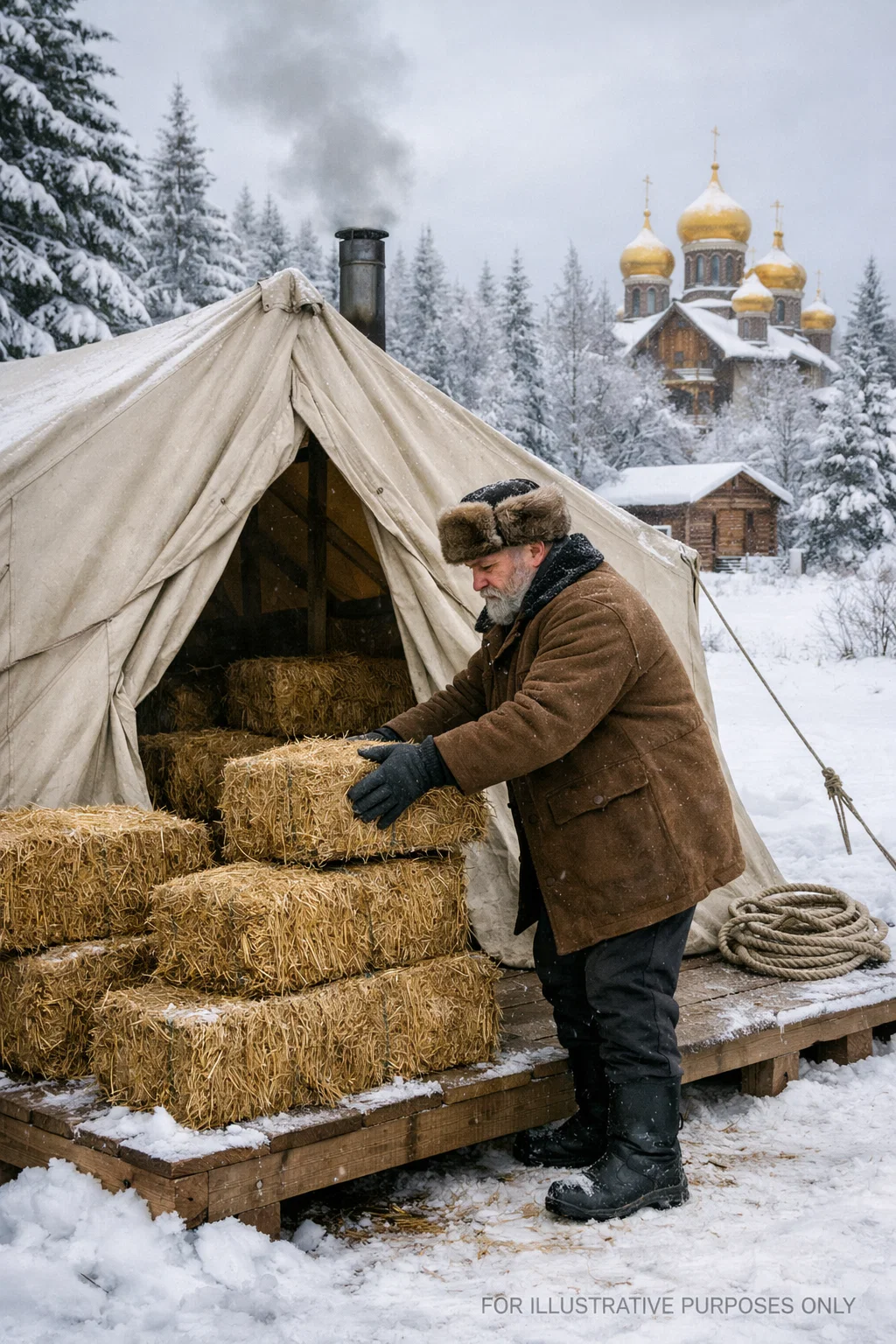 When the old man, instead of a stone house, set up a simple fabric tent in the middle of the snow and began carrying bundles of hay into it, people laughed openly — until the frost came and they understood why he needed so much straw.